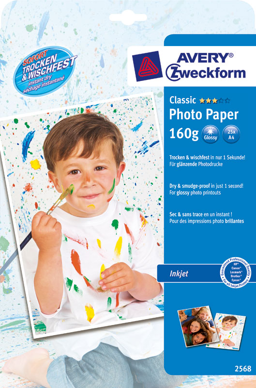 Drucken Sie Schnappschüsse Ihrer letzten Wanderung oder Ihres Zoobesuches auf Classic Inkjet Fotopapier von Avery Zweckform. Die glänzende Fotobeschichtung des Photopapieres im A4 Format ermöglicht die Darstellung natürlicher Farben. Der Ausdruck ist dank effektiver Trockenformel sofort trocken und wischfest. Das Fotopapier mit einer Grammatur von 160 g/m² bietet garantierte Qualität auf allen gängigen Druckermarken.
