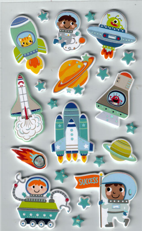 3D Softsticker Weltraum aus buntem Kunststoff Material. Format: 80 x 120 mm Inhalt: 1 Blatt