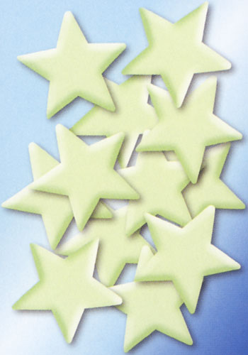 Sticker aus Kunststoff mit Klebepunkt. Speichern Licht und leuchten im Dunkeln lange nach. Rückstandsfei wiederablösbar, daher geeignet für Wände. Format: Ø Stern ca. 37 mm Inhalt: 12 Sterne