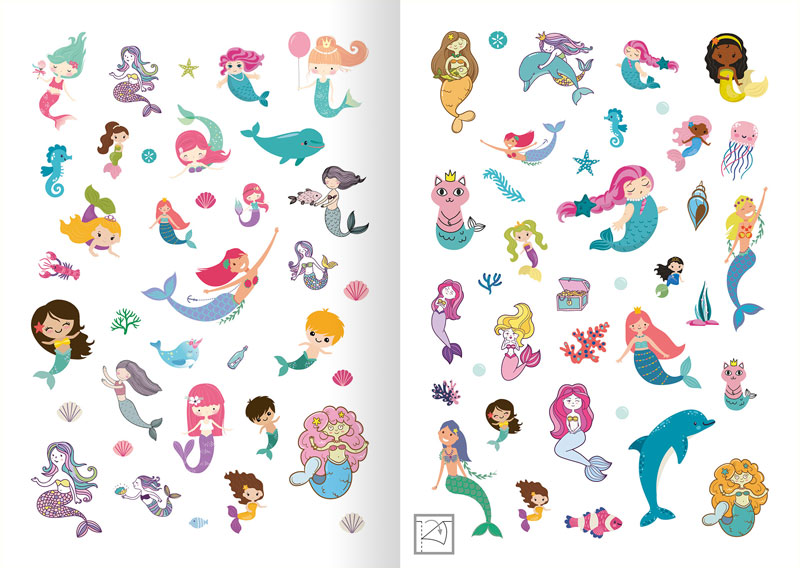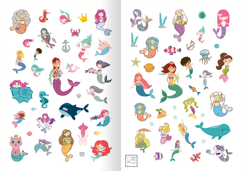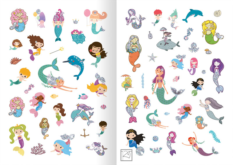 In diesem Heft findest du viele zauberhafte Glitzersticker rund um die Welt der Meerjungfrauen. Ob süße Nixe, Narwal, Seepferdchen, Muschel oder Fisch – hier findet jeder sein Lieblingsmotiv aus der Unterwasserwelt.