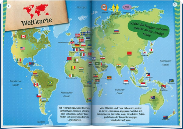 Stickerbuch - Mein erster Weltatlas - Dieser farbenfrohe Atlas voller spannender Fakten, bunter Sticker und Poster mit dem Thema Tierwelt ist genau das richtige für neugierige Entdecker.