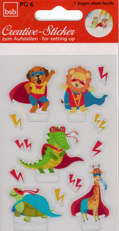 Sticker zum Aufstellen lustige Tiere. Folien Sticker an der Prägung knicken und aufstellen Format: 80 x 120 mm Inhalt: 1 Blatt