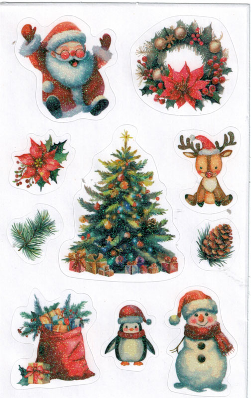 Paper stickers with glitter on the theme of “Christmas.” Size: 78 x 125 mm Contents: 1 sheet