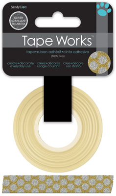 TAPE WORKS - self-adhesive decorative ribbon with glitter. Easily removable again, if one has time "glued". Format: 15 mm x 9 meters Contents: 1 piece Material: paper with glitter