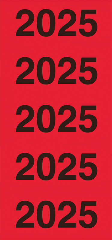 Year numbers 2025 red - Allows clean sorting by years. Different colors of the year numbers facilitate differentiation. Absolutely opaque to reliably cover old lettering. Ideally suited for clearly organizing your files by year.